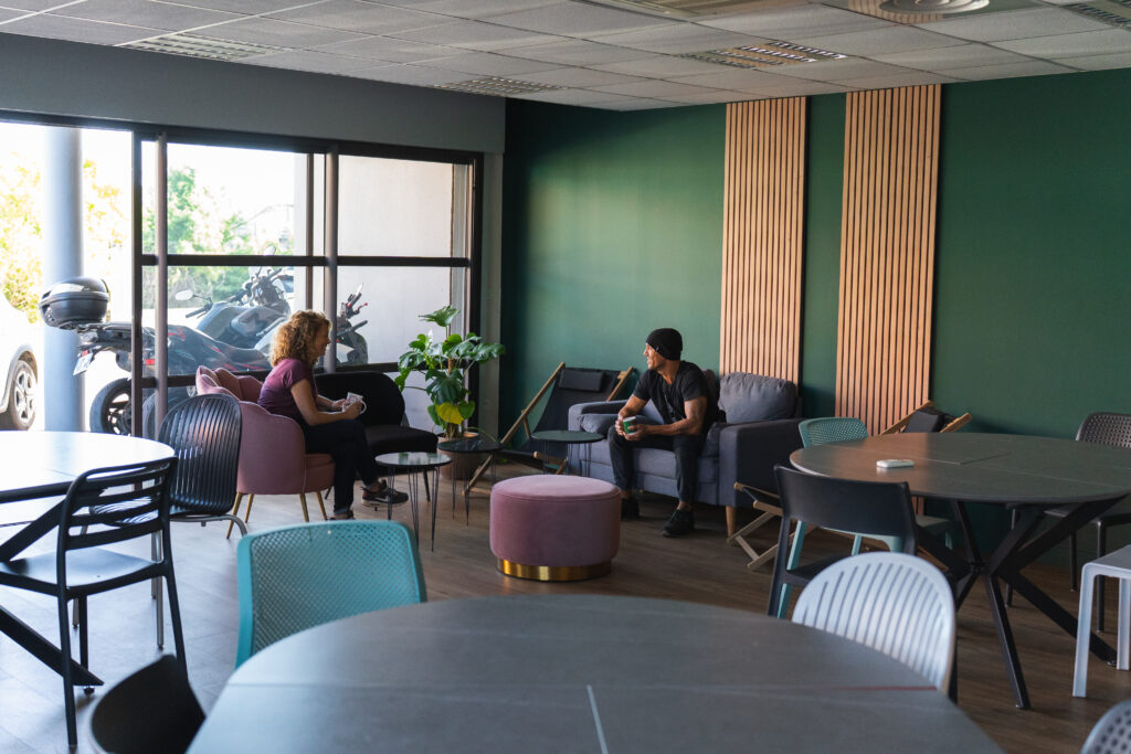 It was paramount for us to create a place where everyone, regardless of their department—from logistics to sales, administration, or production—feels genuinely welcome. A warm and comfortable place, away from the daily rush, where it is pleasant to take the time to relax.